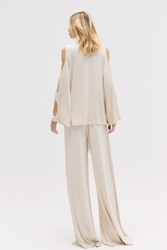 SaleBLUSA AMPLA MANGA LONGA ABERTURAS BRAÇOS MALHA BEGE