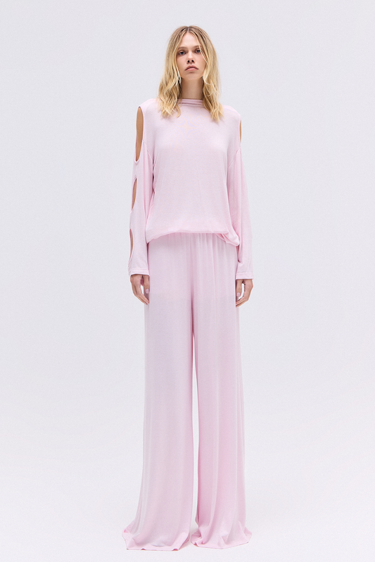 EsgotadoBLUSA AMPLA MANGA LONGA ABERTURAS BRAÇOS MALHA ROSA