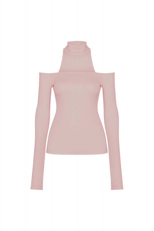 EsgotadoBLUSA DECOTE GOLA FALSA MALHA ROSA