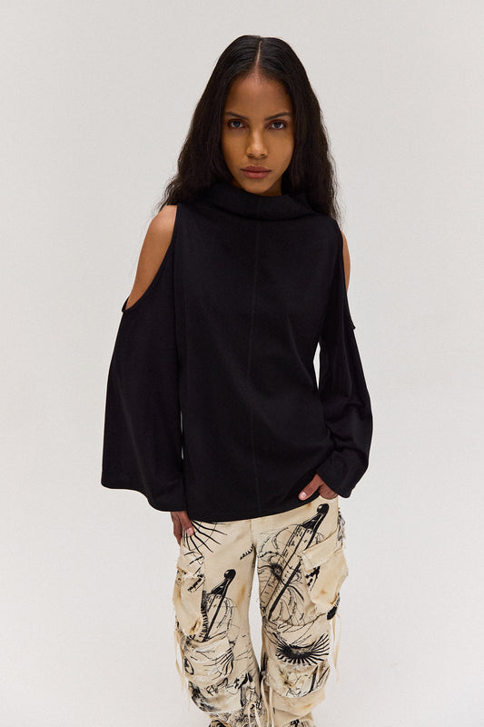 BLUSA AMPLA GOLA ALTA ABERTURA OMBRO MALHA PRETAPreço normal R$ 490,00Preço normalPreço unitário porR$ 490,00Preço promocional R$ 490,002x R$ 245,00