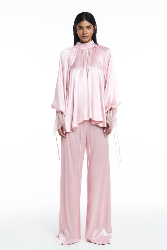 BLUSA GOLA ALTA DRAPEADA CETIM ROSA PUNHO RENDAPreço normal R$ 1.690,00Preço normalPreço unitário porR$ 1.690,00Preço promocional R$ 1.690,008x R$ 211,25