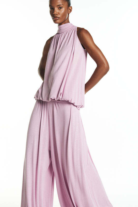 BLUSA GOLA ALTA DRAPEADA SEM MANGA MALHA LAVANDAPreço normal R$ 690,00Preço normalPreço unitário porR$ 690,00Preço promocional R$ 690,003x R$ 230,00