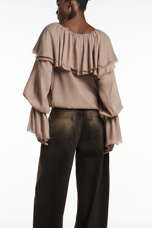 BLUSA DECOTE TRANSPASSE ELÁSTICO CINTURA MANGA AMPLA GEORGETE MANTEIGAPreço normal R$ 1.690,00Preço normalPreço unitário porR$ 1.690,00Preço promocional R$ 1.690,008x R$ 211,25