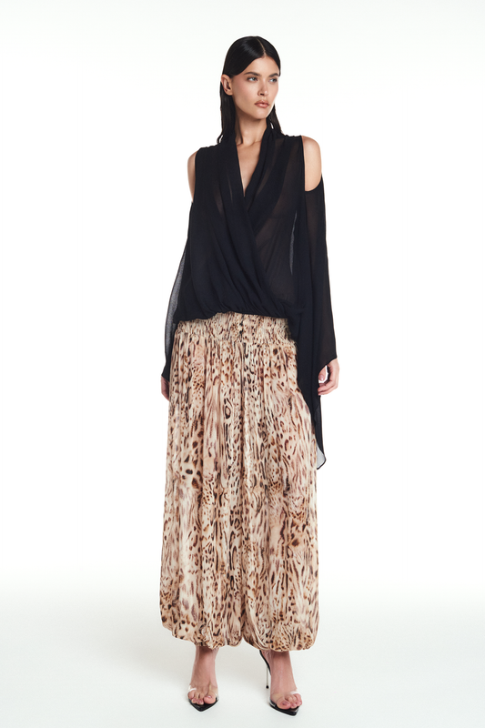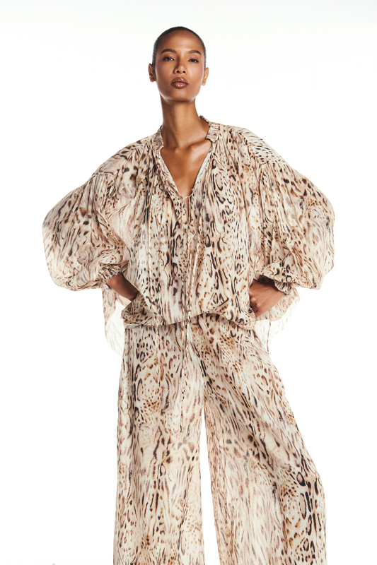BLUSA AMPLA GOLA ALTA MANGA MORCEGO GEORGETE ONÇAPreço normal R$ 2.490,00Preço normalPreço unitário porR$ 2.490,00Preço promocional R$ 2.490,0010x R$ 249,00
