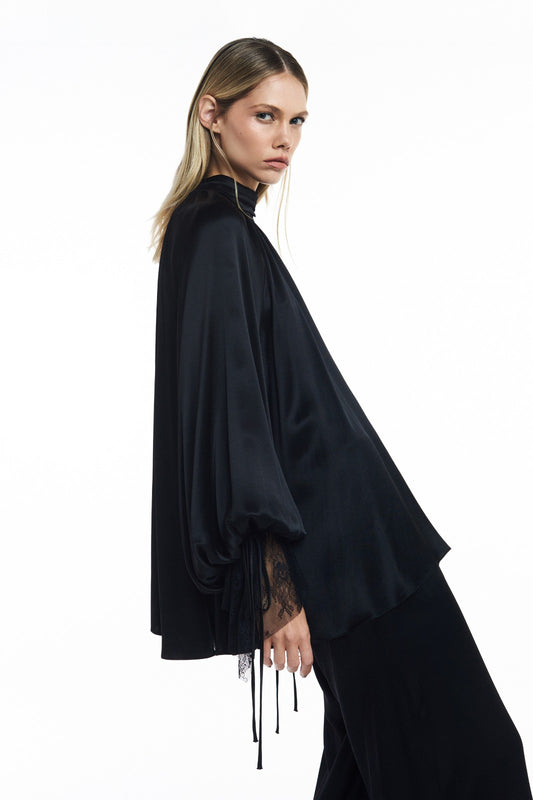 BLUSA GOLA ALTA DRAPEADA CETIM PRETO PUNHO RENDAPreço normal R$ 1.690,00Preço normalPreço unitário porR$ 1.690,00Preço promocional R$ 1.690,008x R$ 211,25