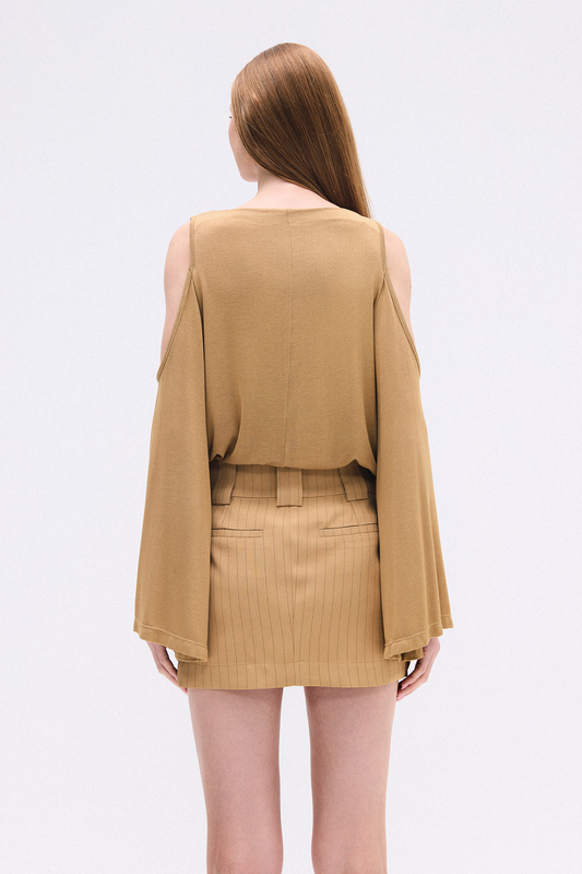 BLUSA GOLA ALTA ABERTURA OMBRO MALHA BEGEPreço normal R$ 430,00Preço normalPreço unitário porR$ 430,00Preço promocional R$ 430,002x R$ 215,00