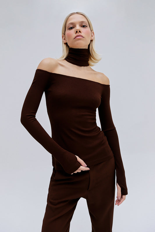 BLUSA DECOTE GOLA FALSA MALHA MARROM