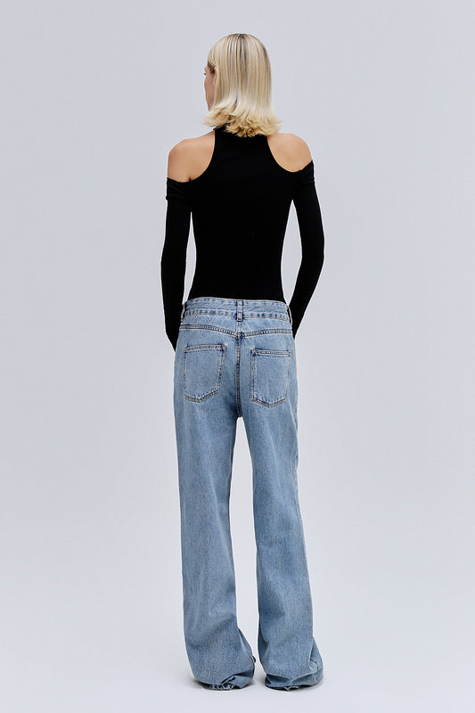 CAMISETA ABERTURA OMBRO MALHA MARROM