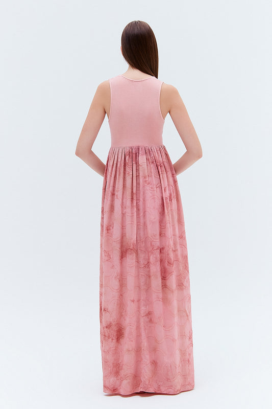 SaleVESTIDO LONGO PEITO TRICOT CORPO JACQUARD ALGODÃO ROSA