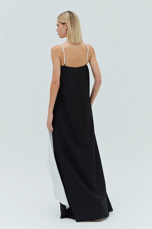 SaleVESTIDO LONGO ALÇA CREPE PATOU PRETO E OFF WHITE