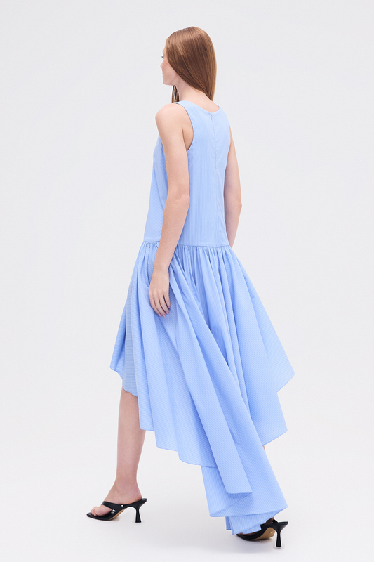 SaleVESTIDO SAIA GODÊ ASSIMÉTRICA TRICOLINE LISTRAS AZUIS