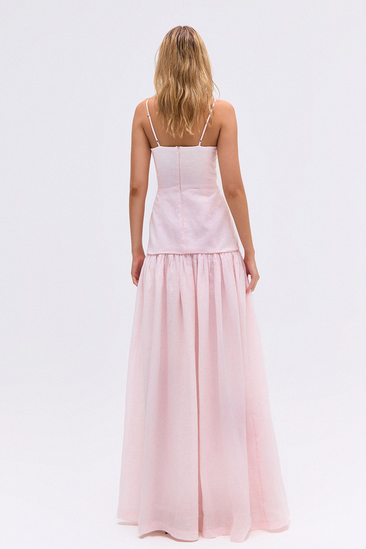 SaleVESTIDO LONGO CORPO ESTRUTURADO LINHO ROSA