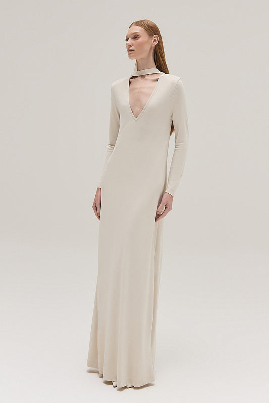 SaleVESTIDO LONGO DECOTE V JERSEY OFF WHITE