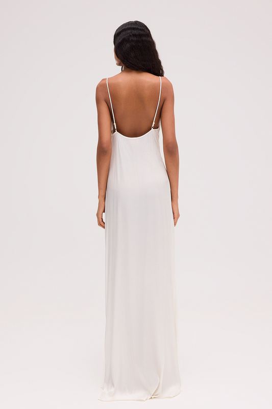 SaleVESTIDO LONGO ALÇA CETIM RENDA DECOTE E FENDA OFF WHITE