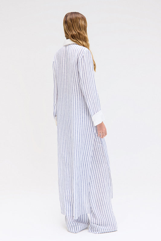 SaleCHEMISE LONGO LINHO LISTRAS LARGAS AZUL ESCURO