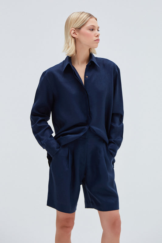 BERMUDA PREGAS LINHO AZUL MARINHO